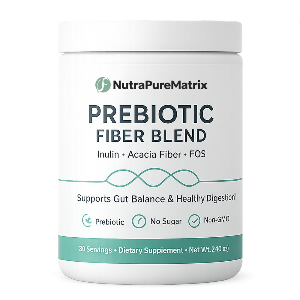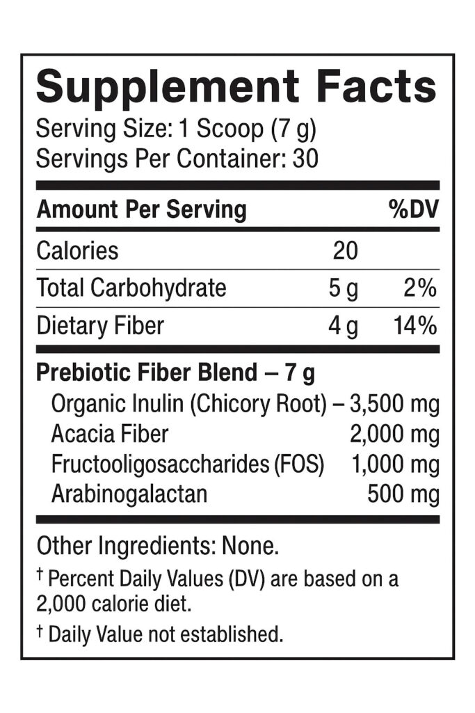 Our Prebiotic Fiber Blend combines organic inulin, acacia fiber, FOS, and arabinogalactan to create a gentle daily formula that may help nourish the gut microbiome and support smoother digestive regularity. This clean, additive-free blend mixes easily into your favorite drinks and may help promote a lighter, more balanced digestive experience.